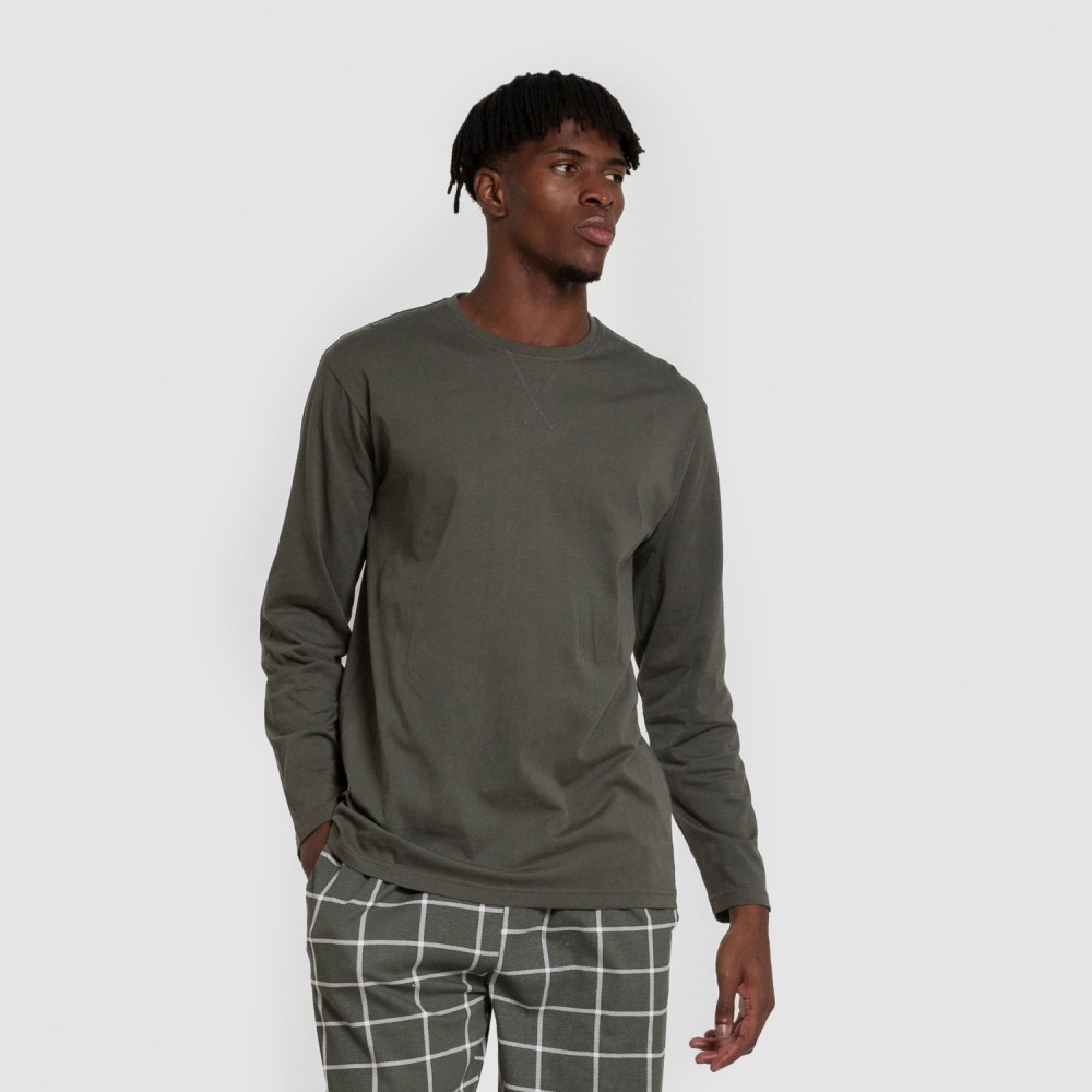 Pijama de hombre compuesto por camiseta de manga larga y pantalón largo.