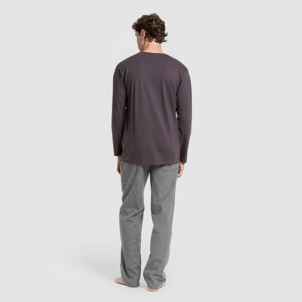 Pijama de hombre compuesto por camiseta de manga larga y pantalón largo de franela.