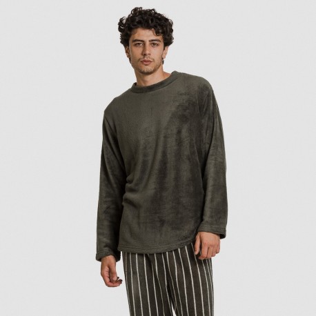 Pijama coral hombre con camiseta y pantalón largo calentito