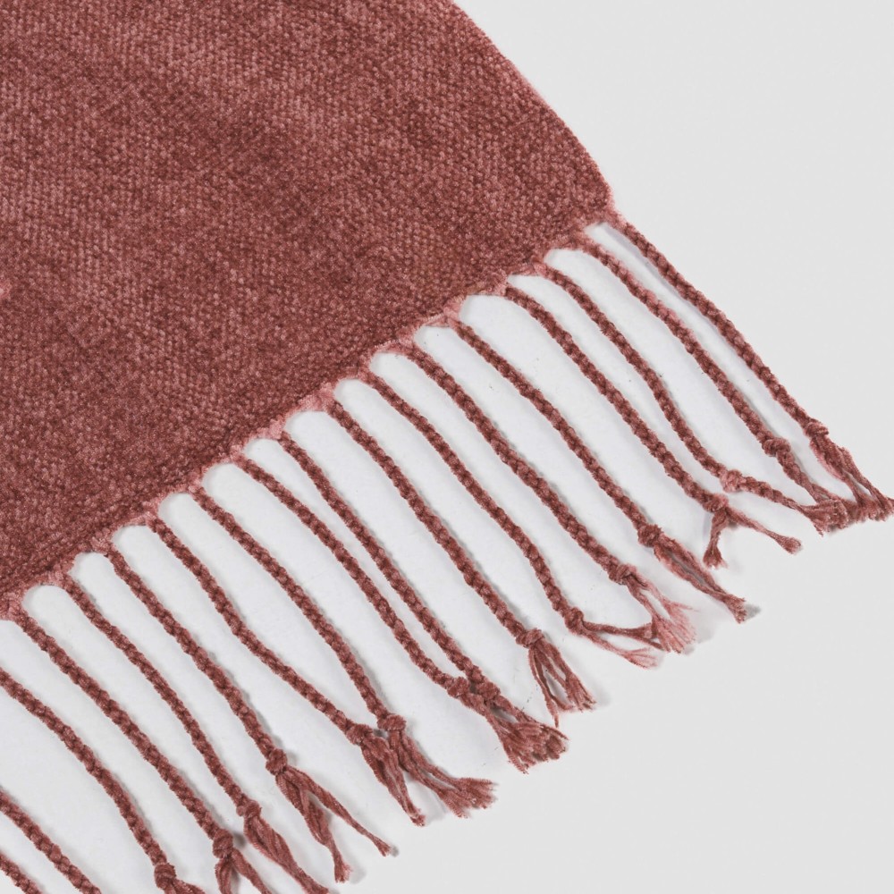 Presenta un diseño sencillo de color liso con flecos en los extremos del mismo tono, ideal para los meses de otoño e invierno.