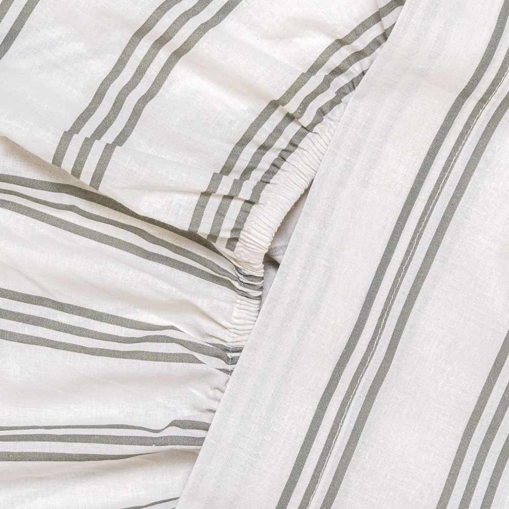 Juego de sábanas 100% algodón modelo Raya Amunia verde seco.