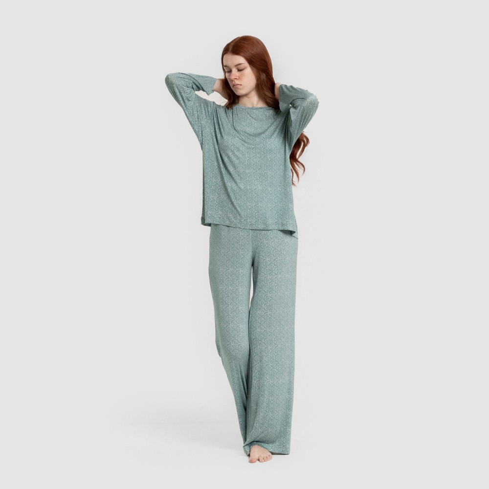 Pijama largo viscosa mujer modelo Virgo verde agua.