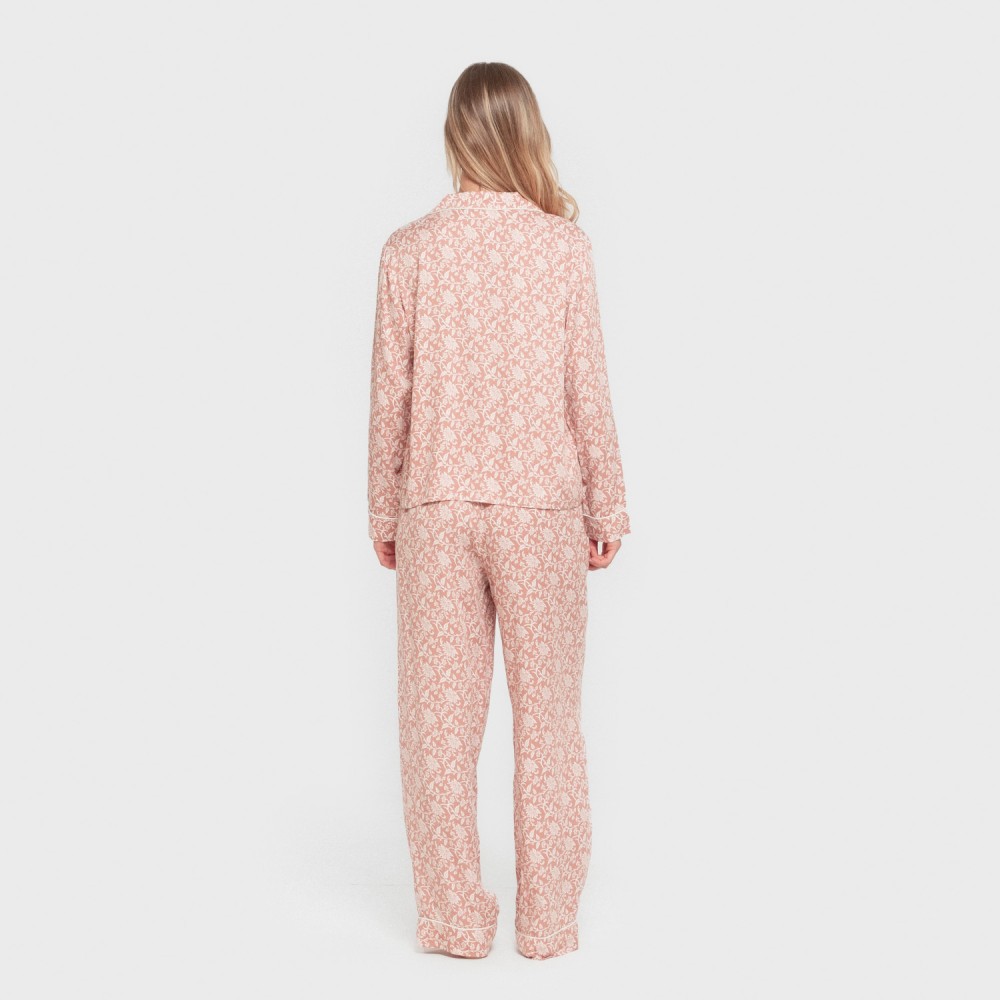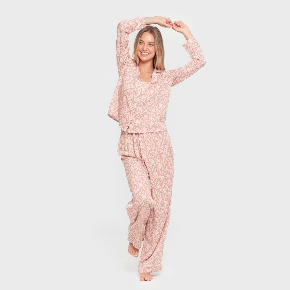 Pijama manga larga camisero viscosa mujer Amira rosette