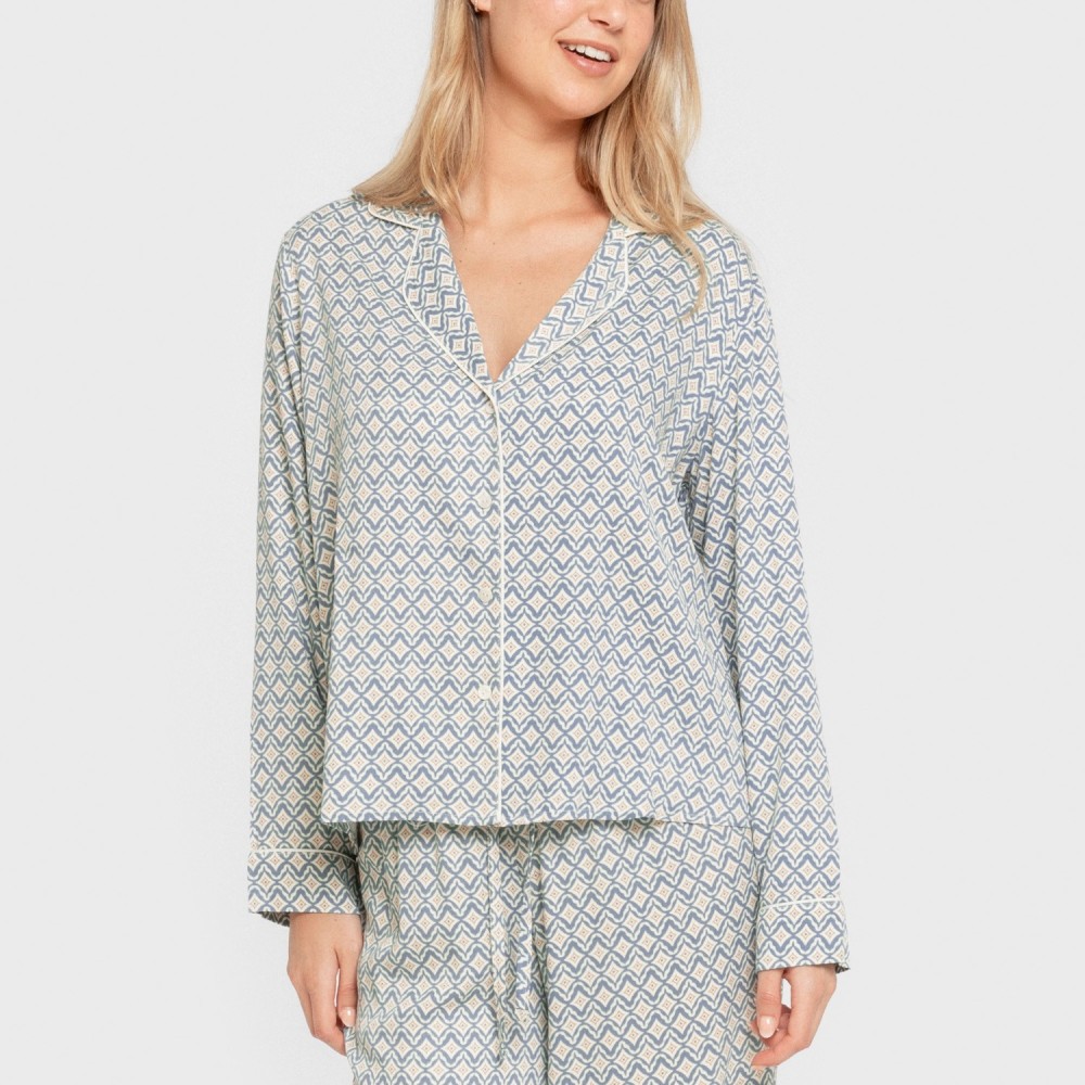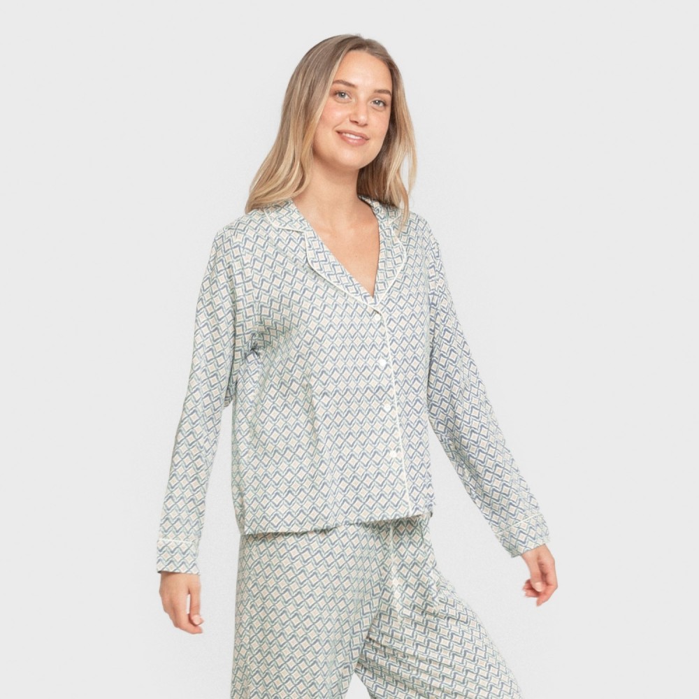 Pijama manga larga camisero viscosa mujer Dulcinea agua marina