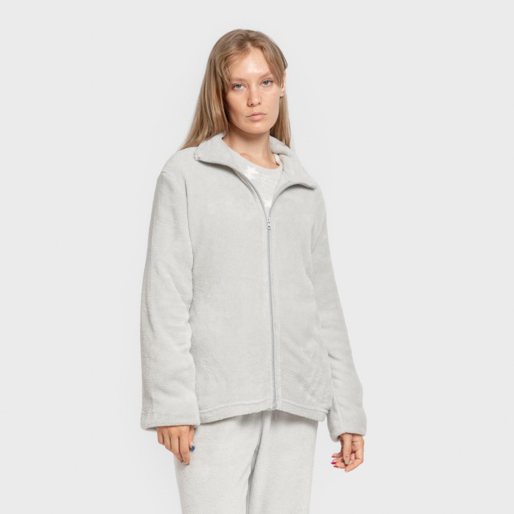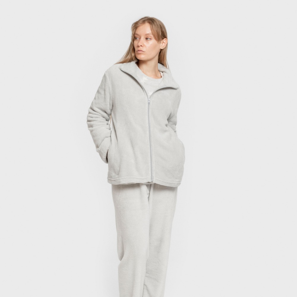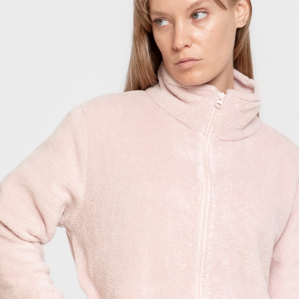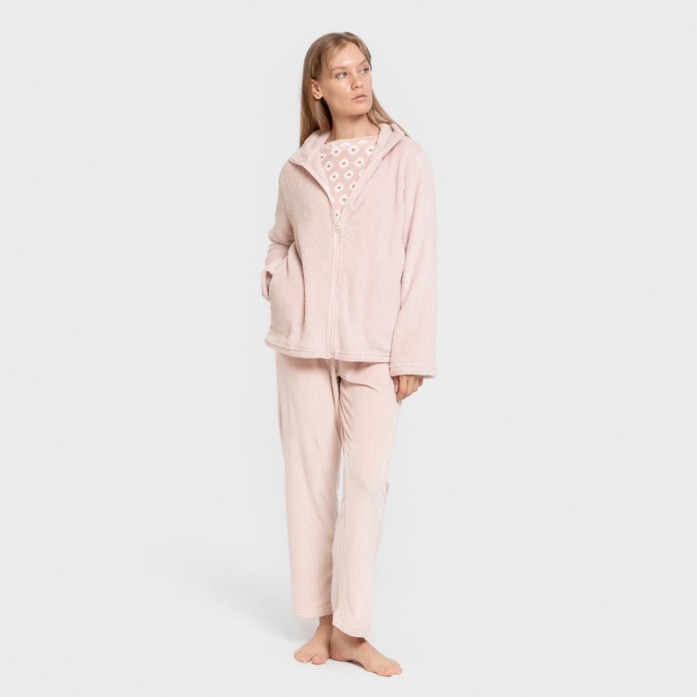 Confeccionada en color liso con bolsillos laterales y cremallera, su tejido coral es suave y además es aislante de la humedad.