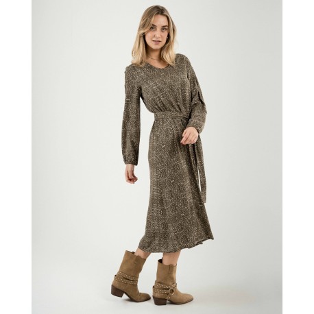 Vestido midi manga larga pico viscosa estampado.