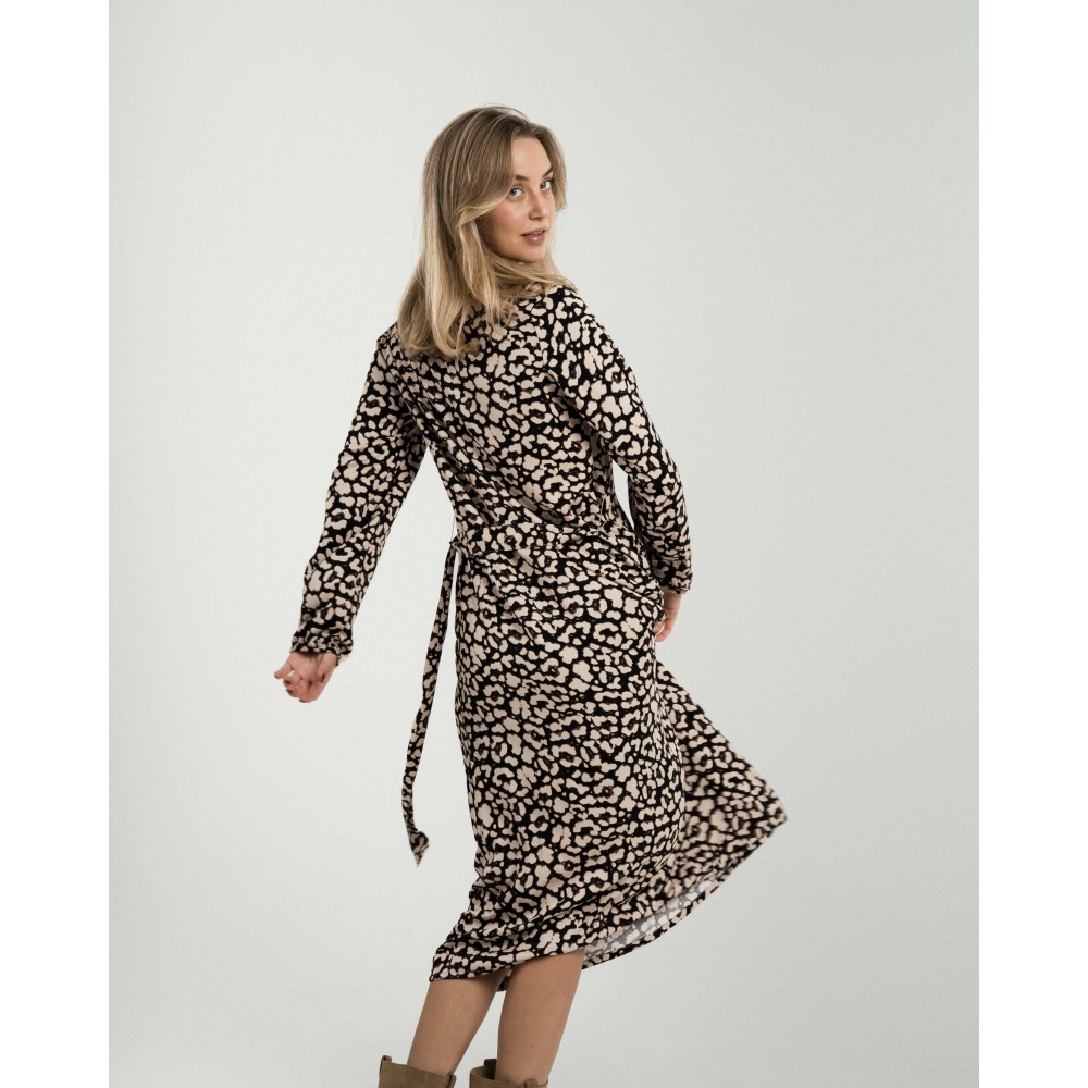 Vestido de manga larga con escote de pico y cintura ajustable con lazo para adaptarlo a tu gusto.