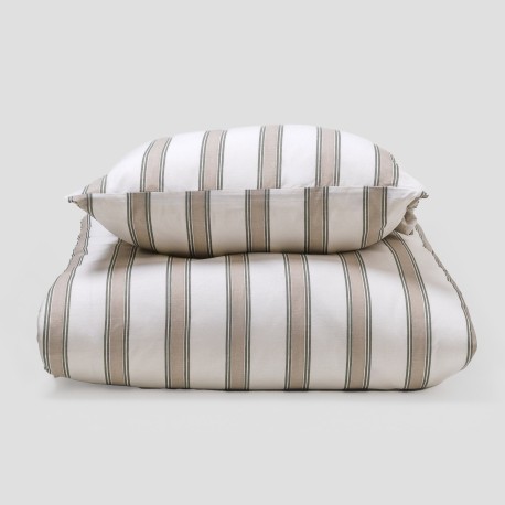 Funda nórdica algodón Raya Sitges verde seco - topo