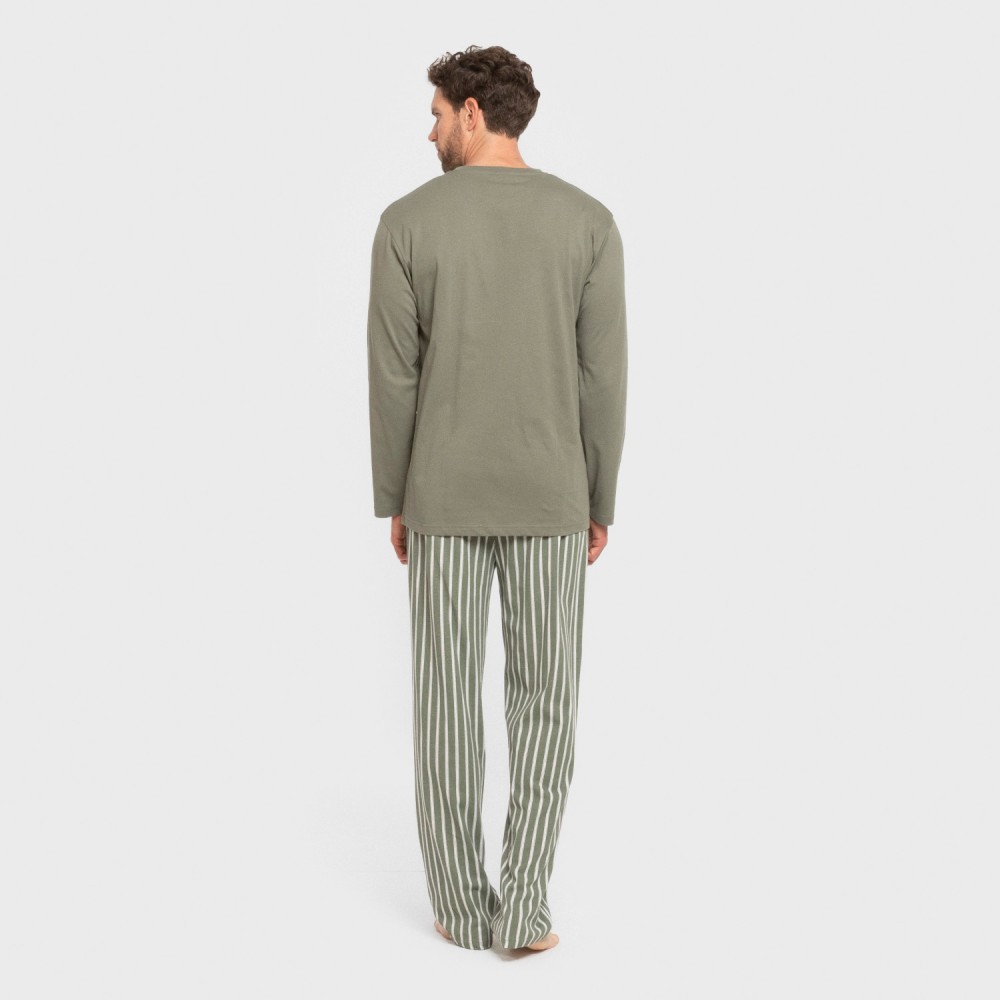 Pijama largo algodón hombre Raya Albert verde caceria