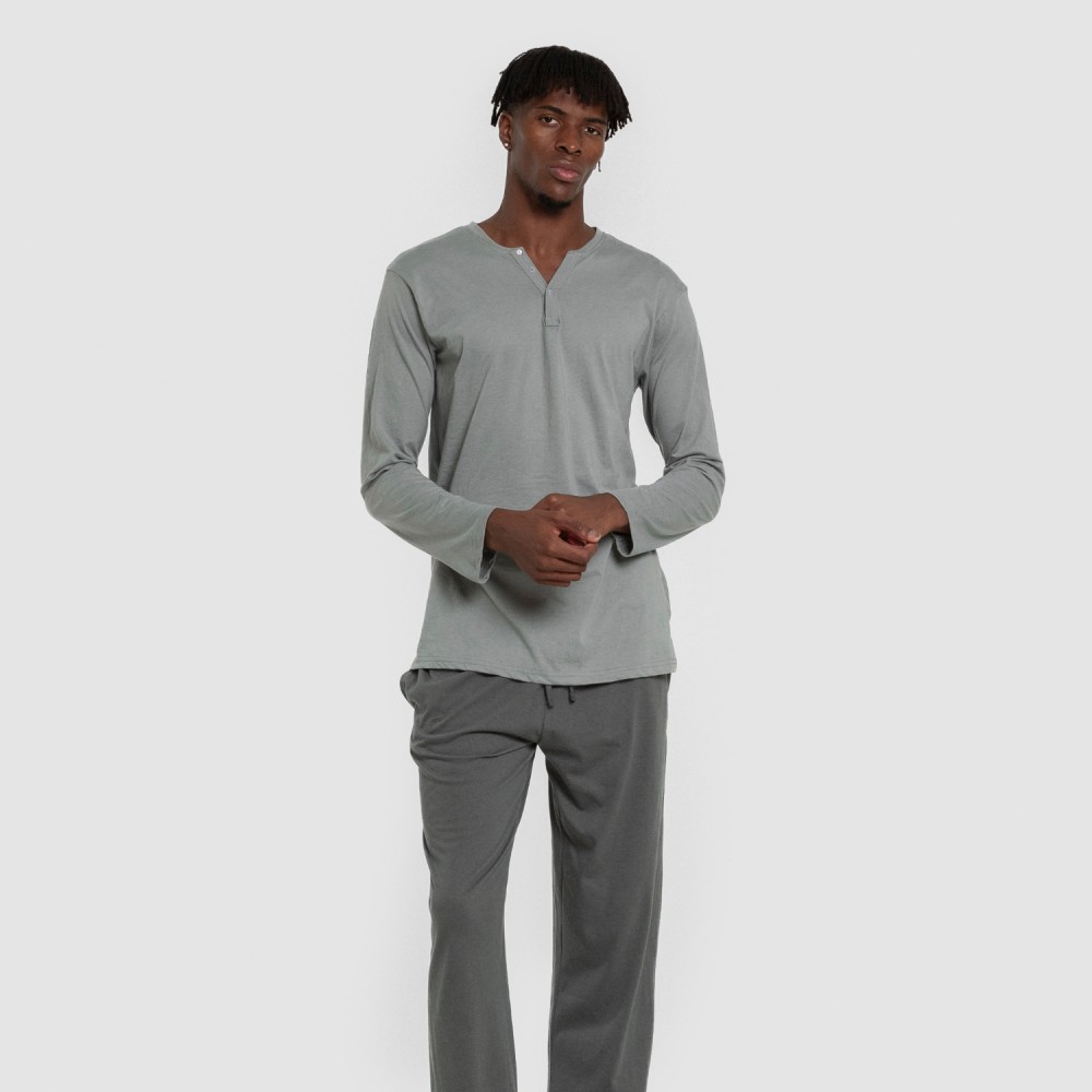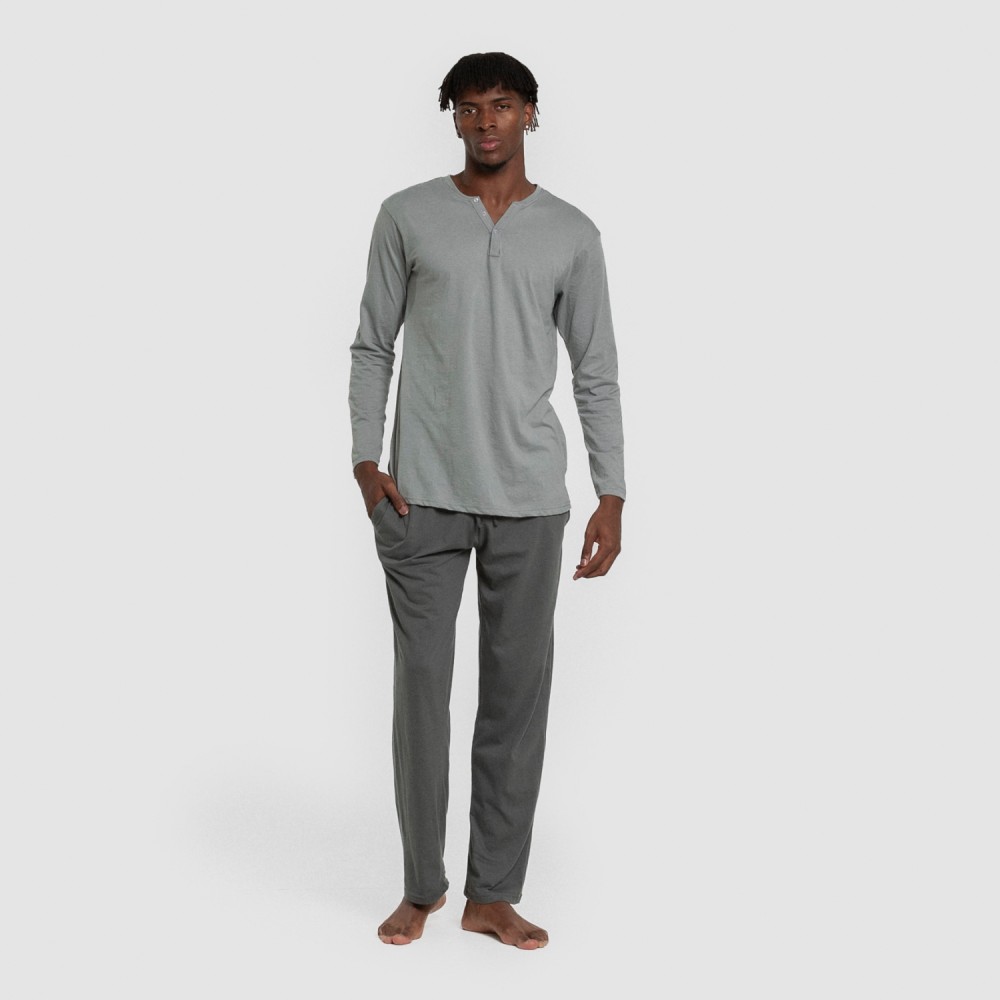 Pijama de hombre compuesto por camiseta de manga larga y pantalón largo.