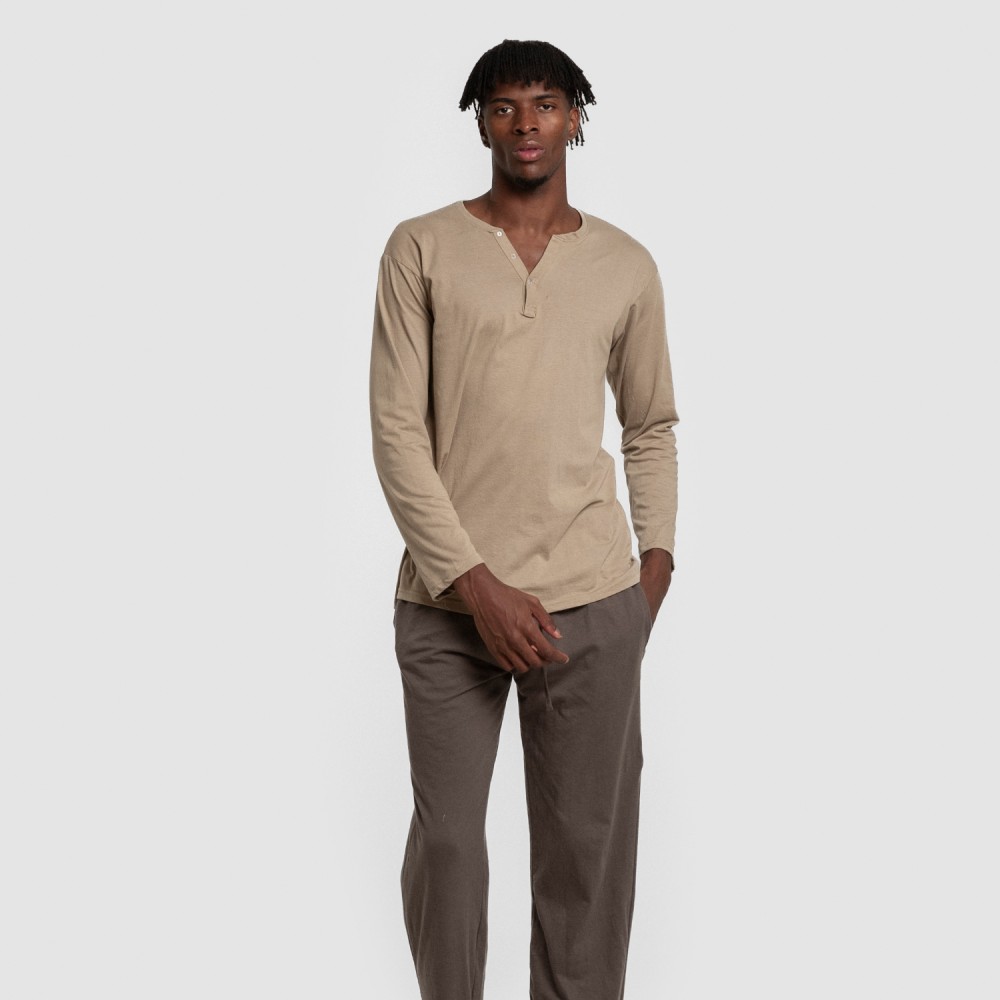Pijama de hombre compuesto por camiseta de manga larga y pantalón largo.