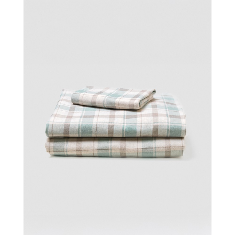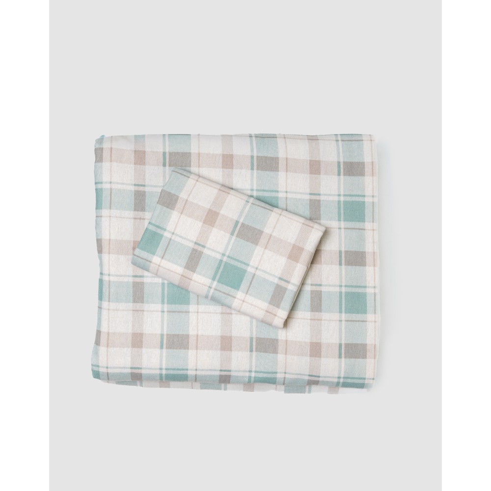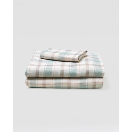 Juego de sábanas franela modelo Cuadro Noric verde.