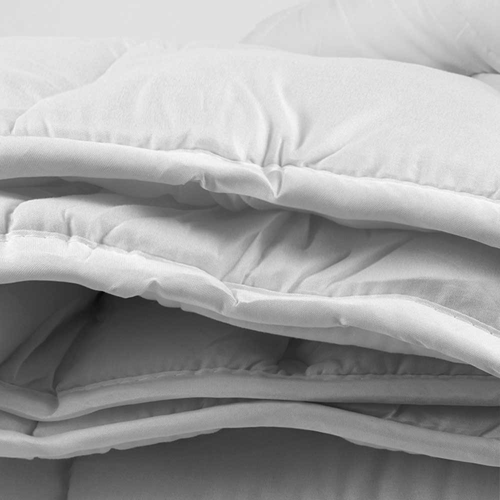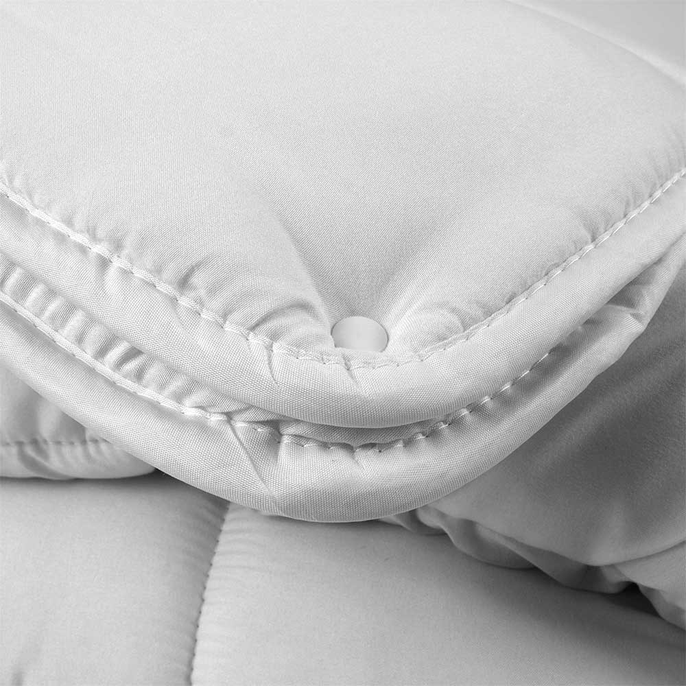 Combina dos capas de relleno, una más fina de 150gr/m2 y otra más gruesa de 300gr/m2, utilizables por separado para acomodarlo a sus preferencias gracias a sus botones de clic colocados que hará que pueda utilizar su relleno durante todo el año. Su tejido es suave y evita la proliferación de bacterias por su microfibra hueca siliconada que permite una mejor transpiración.